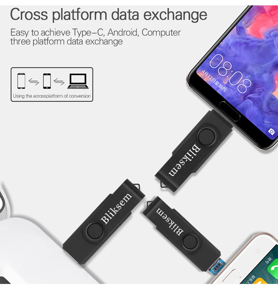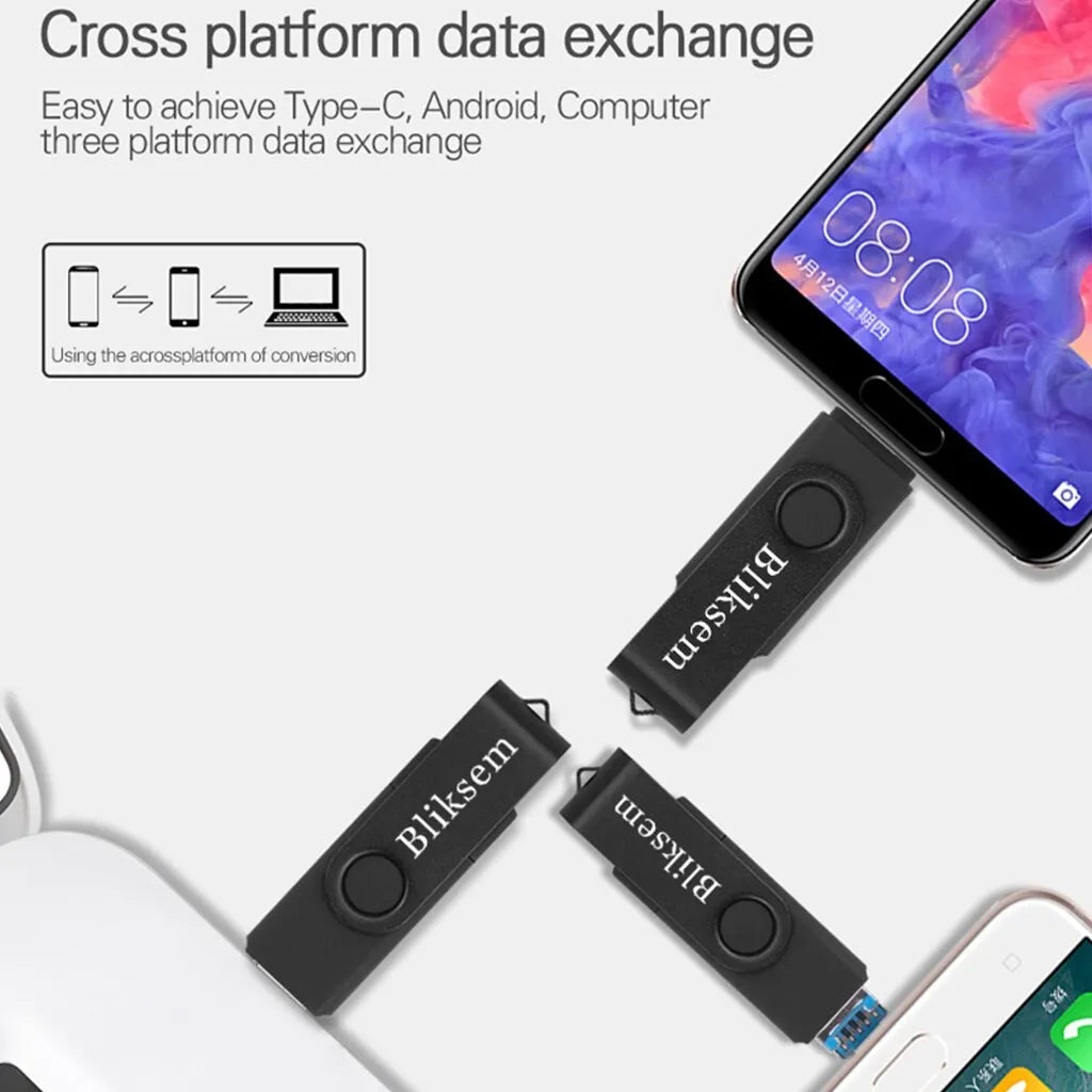 Bliksem 3IN1 Pendrive 64GB TYPE C Memory Stick OTG 64GB 2.0 for PC Mobile Phone Metal USB Flash Drive Pen Drive 64GB USB OTG